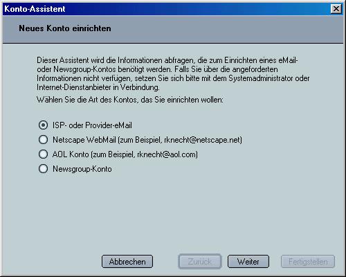 Auswählen, wie oben, und weiter geht's ! (ISP steht für Internet