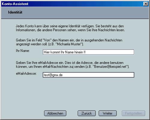 Oben kommt Ihr Name rein, unten Ihre ganz normale E-Mail