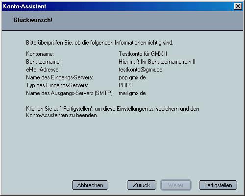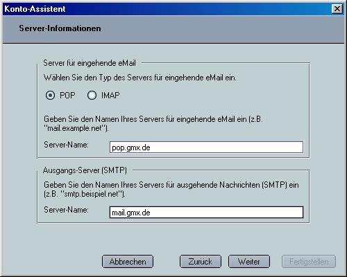 der SMTP-Server schon vorgegeben. Das ist