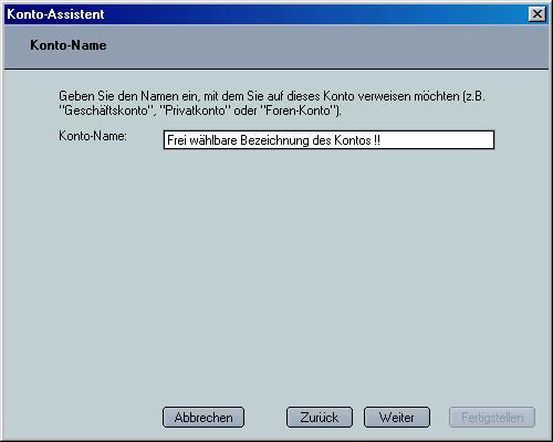 Zum guten Schluß noch eine Bezeichnung für das Konto aussuchen, und
