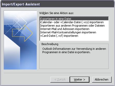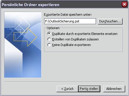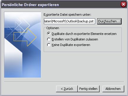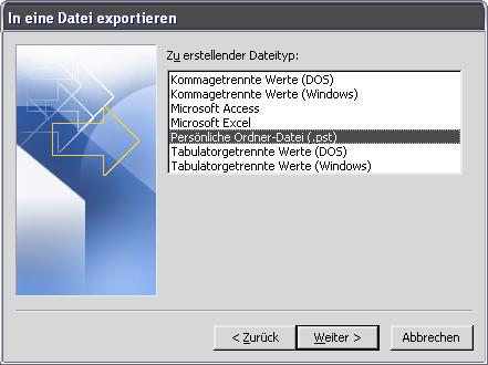 Outlook soll, halte ich die .PST Datei für am sinnvollsten, also wählen