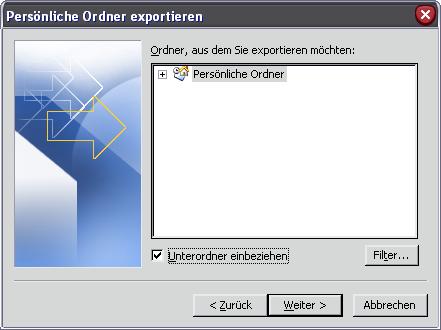 wir den Eintrag PERSÖNLICHE ORDNER-DATEI (.PST)