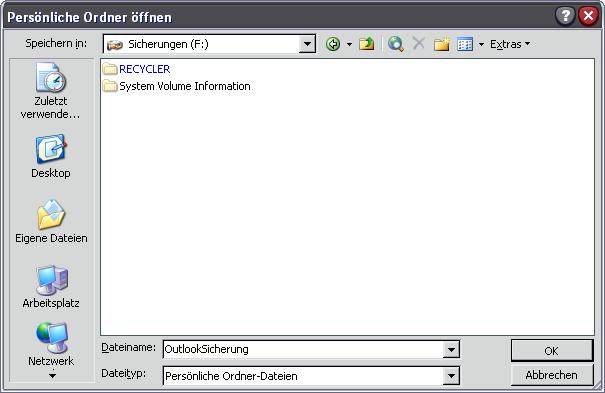 werden soll. Outlook gibt einen internen Pfad vor, wer den beibehalten