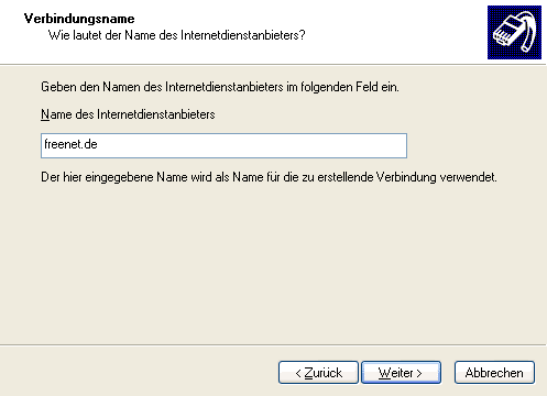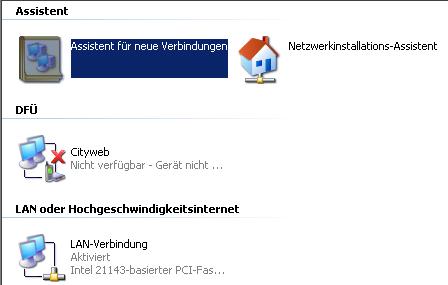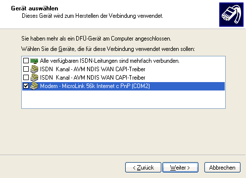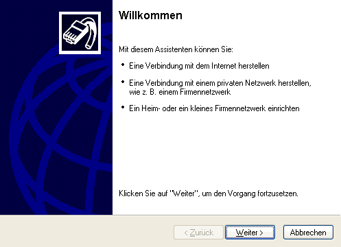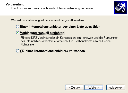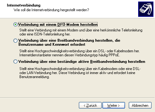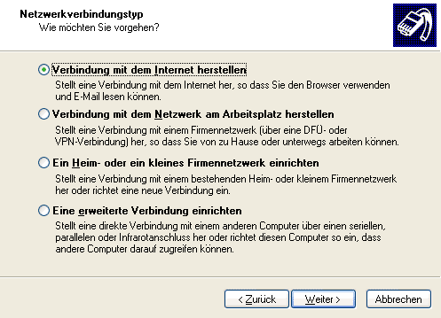 Internetverbindung ausgewählt werden, und danach wieder auf