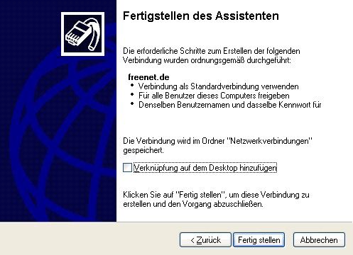 Verknüpfung der gerade konfigurierten Verbindung auf den Desktop haben